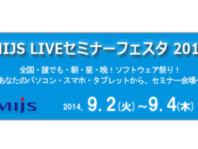 MIJS LIVEセミナー フェスタ 2014 全国・誰でも・朝・昼・晩!ソフトウェア祭り! ~あなたのパソコン・スマホ・タブレットから、セミナー会場へ~ MIJSが2014年9月2日(火)~4日(木)の3日間、エン… -